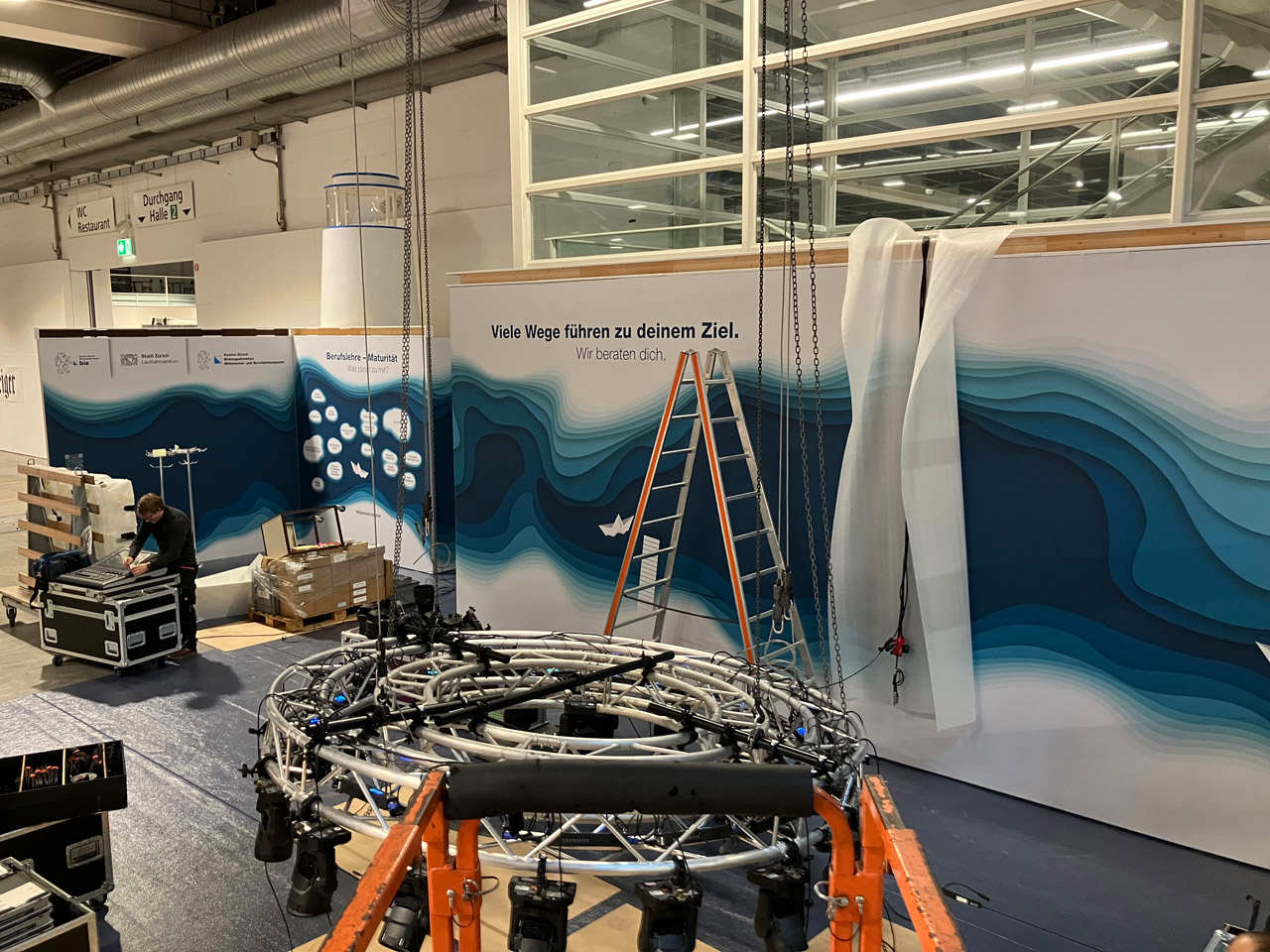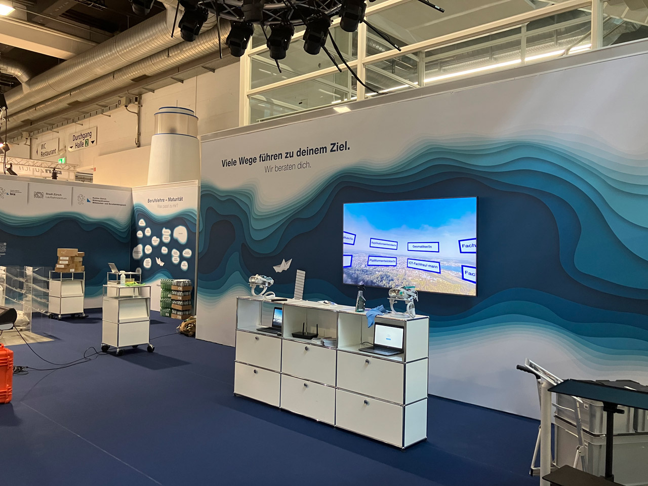 Messestand Laufbahnberatung2025-10-28T14:48:34+01:00 Projekt ImpressionenReferenzen ÜbersichtProjekt Details by Szenenwerk: Planung, Produktion und Montage. Ausführungsjahr 2025, 2024 Kunde Laufbahnzentrum Stadt Zürich Teile dieses Projekt! FacebookXLinkedInWhatsAppPinterestE-Mail Ähnliche Projekte Umbau Cyber Poschi Tag der offenen Tore Zwilag Messestände Jardin Suisse Showroom Schindler X8